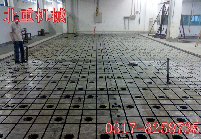 鐵地板T型槽平臺、T型槽工作臺、T型槽平板安裝時按地腳螺栓孔的位置放入相應的機床調(diào)整墊鐵,10~15mm可調(diào),地腳螺栓孔配蓋板。